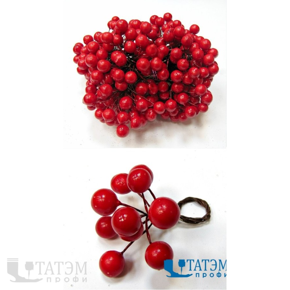 Ягоды декор. 1,2 см на проволоке 2-х сторон. в изморози красно-зеленый, уп. 200 шт